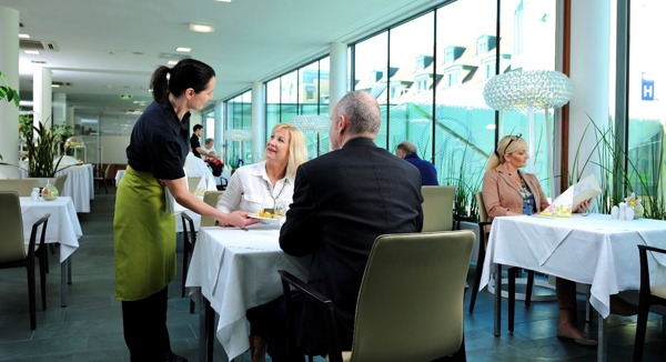 Mit regionalen Köstlichkeiten, raffinierten Gerichten und der einzigartigen hausgemachten Patisserie, die zum Naschen und Genießen einlädt, verwöhnt das Küchenteam unter der Leitung von Bernhard Laimer Gäste und Patienten aus aller Welt. Um den hohen Ansprüchen der internationalen Klientel gerecht zu werden, werden täglich verschiedene Speisen – darunter natürlich auch vegetarische, vegane oder allergiefreie Gerichte – angeboten, aus denen nach Gusto und Laune gewählt werden kann. Bei gesundheitlichen Fragen stehen die Diätologinnen des Hauses mit Rat und Tat zur Seite.