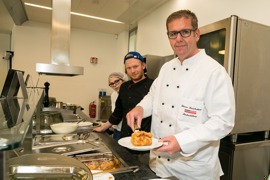Bei uns wird nichts verschwendet. Unser Selbstbedienungsrestaurant kocht nach Maß rund 1.500 Mahlzeiten pro Woche und bäckt sogar das Brot für seine Gäste selbst. Der Bio-Anteil bei den verwendeten Lebensmitteln wird kontinuierlich größer und liegt derzeit bei rund einem Drittel, Tendenz steigend.