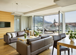 Umgeben von einzigartigem Bergpanorama ist das Austria Trend Hotel Congress Innsbruck Sinnbild für Hotellerie der Extraklasse. Nur ein paar Schritte entfernt von der Innsbrucker Altstadt und direkt gegenüber der Hungerburgbahn haben Sie die Wahl zwischen Kultur oder Natur pur. Nachdem Sie den Charme der Stadt ausgekostet haben, lädt der hoteleigene Spa-Bereich inklusive Sauna und Fitnessraum zum Entspannen ein.