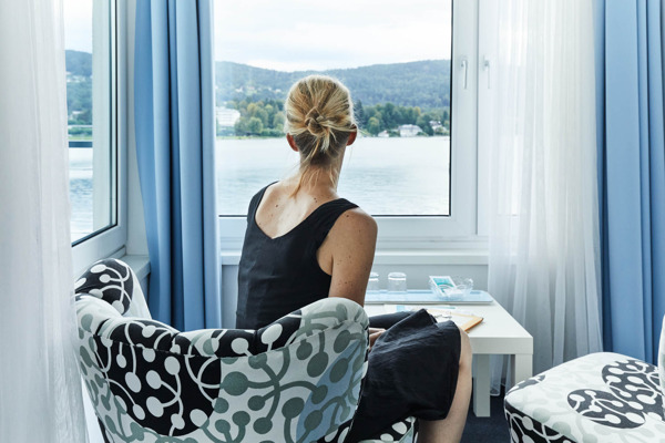 Das Boutiquehotel OGRIS AM SEE liegt direkt am Wörthersee im Herzen von Velden. Der Familienbetrieb wurde von Architektin und Betreiberin Astrid Meyer-Hainisch gestaltet: In den 12 Doppelzimmern mit Balkon und Seeblick trifft zeitgenössisches Design den Charme der 1950er Jahre. Eine Bibliothek, ein eigenes Seebad und eine Fahrradgarage sowie eine E-Ladebox gehören zum Angebot im Hotel. Einzigartig ist das private Spa auf der Dachterrasse mit Dampfbad und Panoramasauna mit Blick über den Wörthersee.
