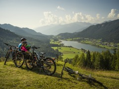 Für Bahnreisende bieten wir einen kostenlosen Bahnhofshuttle an. Für die Mobilität während des Urlaubs sorgen der Naturparkbus, die Weissensee Bergbahn und die Weissensee Schifffahrt. Allen Gästen stehen kostenlose Citybikes zur Verfügung. In 5 Minuten ist man im Zentrum und kann nach Lust und Laune die Wege rund um den See erkunden. Wer hoch hinaus auf unsere Almen möchte oder sich lieber waghalsig über einen der drei Downhill-Trails ins Tal "stürzen" will, kann sich das perfekte Mountainbike beim Alpensport Weissensee ausborgen. Und weil wir uns freuen, wenn unsere Gäste uns auf unserem Weg zur Nachhaltigkeit mit ihrer klimafreundlichen Anreise unterstützen, gibt es für die Familie als Geschenk ein „Kuhles Bauernhof-Eis von Lissi“.