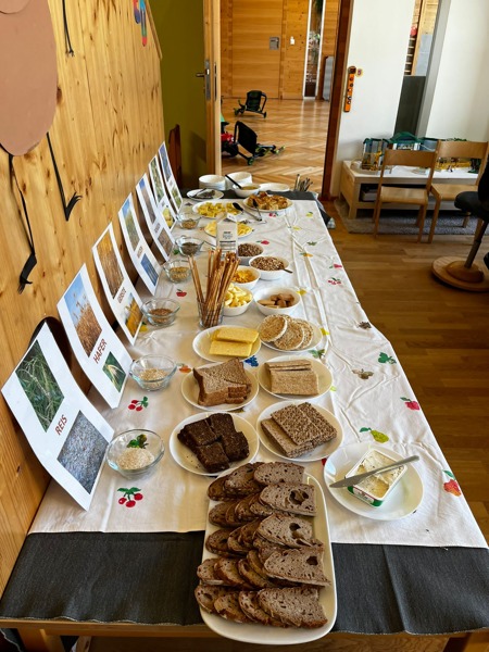 Wir legen großen Wert auf eine gesunde, kluge und abwechslungsreiche Ernährung. Es wird jeden Tag für und auch mit den Kindern von unserer hauseigenen Köchin frisch gekocht, wobei wir auf regionale und saisonale Produkte achten. Im Frühjahr, Sommer und Herbst ernten wir Obst, Kräuter und Gemüse aus unserem Garten und Hochbeeten, die zuvor von den Kindern bepflanzt worden sind. So wollen, wir den Kindern Möglichkeiten bieten in unterschiedlichen alltäglichen Tätigkeiten mithelfen zu können. Umrahmt mit der pädagogischen Planung, erleben sie Verantwortung zu übernehmen, jahreszeitliche Veränderungen mit allen Sinnen zu erfahren, achtsam mit unserer Natur umzugehen und unterschiedliche Bedürfnisse wahrzunehmen und zu achten. Wir genießen täglich mit den Kindern unseren großen Garten sowie andere Bewegungsangebote in unseren großräumigen Bewegungsräumen. Bei unseren regelmäßigen Wald- und Wiesentagen beobachten, erforschen und bespielen wir angrenzende Waldstücke. Die ganzheitliche Entwicklung der Kinder steht dabei im Vordergrund. Aber nicht nur in der Natur sondern auch in den einzelnen Gruppen leben wir Werte für ein wertschätzendes Zusammenleben. Wir wollen den Kindern schon von Anfang an, Ansätze von Toleranz und Verständnis für Verschiedenartigkeiten, ein geschlechtersensibles Rollenverständnis, Verständnis für unterschiedliche Lebensweisen und Interessen mit auf den Weg geben. Für ein positives Selbstwertgefühl, und für die Entwicklung von Sozialkompetenzen ist das Motto: „Ich bin Ich und Du bist Du“ immer ein fixer Bestandteil der jährlichen Planung. Jedes Kind ist bei uns willkommen und trägt einen wichtigen Teil zu unserer Gemeinschaft bei.