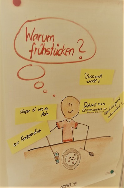 Dazu setzten wir uns mit Themen wie Umweltschutz, Müll trennen, Mobilität, Strom sparen, Regionalität, Konsumverhalten, Hygiene und Artenvielfalt auseinander.