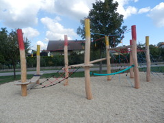 Mit fast 7 000 m² ist unser sehr weitläufiger Außenbereich besonders hervorzuheben. Dieser wird in den Pausen regelmäßig von den SchülerInnen genutzt und auch in die Unterrichtsgestaltung miteinbezogen. Neben Kommunikationsräumen (Sitzbänken, Baumstümpfen, Holz-Sitzgarnitur unter Weinrebendach) steht den SchülerInnen ein eigener Spielplatz aus Robinienholz zur Verfügung. In den letzten Jahren wurden im Außenbereich gemeinsam mit den SchülerInnen naturnahe Flächen (Komposthaufen, Naschhecke, Obstbäume) angelegt und nun auch gemeinsam betreut.