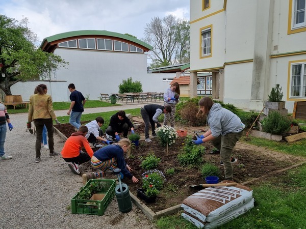 Zum Beispiel achten wir auf eine aktive Pausengestaltung. In dieser finden unsere Schülerinnen und Schüler eine Naschecke zum Verwöhnen, Sitzgelegenheiten zum Entspannen und Freiraum zum Bewegen. Wir wollen unseren Lebensraum bewahren und weiterentwickeln. (Projekte zur Mülltrennung, Recycling, Besuch einer Kräuterpädagogin, etc.)