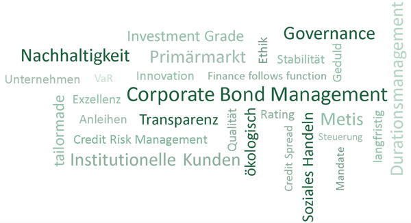 Asset Management nach Maß ist das Motto der Metis Invest und zugleich Basis einer verlässlichen Partnerschaft sowie langfristig stabilen Ertrags. Dieser Ansatz findet durch die explizite Berücksichtigung von ethisch-ökologischem Handeln in der Vermögensveranlagung eine optimale Ergänzung. Aus diesem Grund wurde der bestehende Investmentprozess im Corporate Bond Management entsprechend erweitert und findet nun Anwendung im neu gegründeten Metis Bond Euro Corporate ESG Fonds.