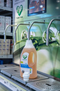 Und so geht's: Die erste Flasche kauft man ganz regulär. Sobald der Inhalt aufgebraucht ist, bringt man die leere Produktverpackung gut ausgespült und getrocknet wieder zu einem Geschäft mit dem Liquid Dispenser. Man scannt den Code auf der (mitgebrachten) Produktverpackung, und startet die Nachfüllung – alles andere erledigt der Liquid Dispenser.