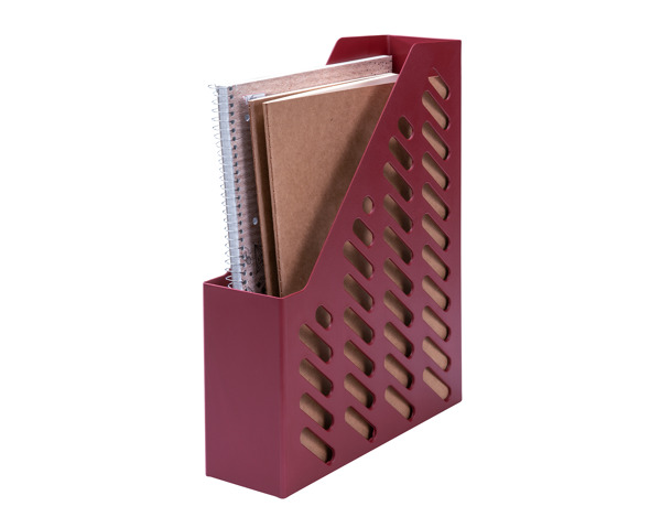 Stehsammler KLASSIK KARMA bis DIN A4/C4. Der umweltfreundliche Stehsammler. Nichts kippt mehr, nichts liegt herum, alles ist schön sortiert. Für das HAN KARMA-Programm werden Post Consumer Materialien (bereits benutzte Kunststoffprodukte) verarbeitet. Extra hohe Vorderseite um Dokumente sicher zu halten. Mit seitlichem Raster, das Einsicht auf Kataloge, Prospekte, Zeitschriften, etc. erlaubt. Mit praktischem Griffloch im Rückenteil für eine schnelle Entnahme. Zur Aufbewahrung von Unterlagen bis DIN A4/C4 geeignet. Fassungsvermögen: 70 mm. Made in Germany. Außenmaße (B x T x H): 76 x 246 x 315 mm. Höhe vorne: 148 mm. Material: 80-100% Recyclingmaterial. Farbe: öko-rot.