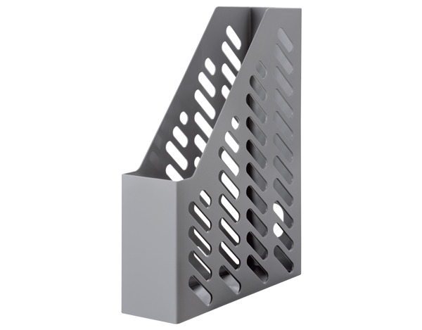 Stehsammler KLASSIK KARMA bis DIN A4/C4. Der umweltfreundliche Stehsammler. Nichts kippt mehr, nichts liegt herum, alles ist schön sortiert. Für das HAN KARMA-Programm werden Post Consumer Materialien (bereits benutzte Kunststoffprodukte) verarbeitet. Ausgezeichnet mit dem Umweltzertifikat: DER BLAUE ENGEL. Extra hohe Vorderseite um Dokumente sicher zu halten. Mit seitlichem Raster, das Einsicht auf Kataloge, Prospekte, Zeitschriften, etc. erlaubt. Mit praktischem Griffloch im Rückenteil für eine schnelle Entnahme. Zur Aufbewahrung von Unterlagen bis DIN A4/C4 geeignet. Fassungsvermögen: 70 mm. Made in Germany. Außenmaße (B x T x H): 76 x 246 x 315 mm. Höhe vorne: 148 mm. Material: 80-100% Recyclingmaterial. Farbe: öko-grau.