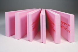 hochwärmedämmende, druckfeste und wasserabweisende Dämmplatte aus Extruderschaum.