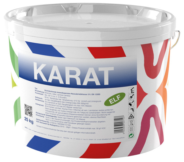 Stumpfmatt, hoher Weißgrad, airlessspritzbar, hoch wasserdampfdurchlässig, ELF (emissionsminimiert, lösemittel- und weichmacherfrei),