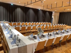 Der überdachte Vorplatz bietet Möglichkeiten für Empfänge, kleine Veranstaltungen im Freien oder für ein herzliches Grüß Gott. Der angrenzende Parkplatz kann auch als zusätzliche Veranstaltungsfläche für größere Events genutzt werden. Die Möglichkeit ein ca. 20 x 40 Meter Zelt aufzustellen besteht.