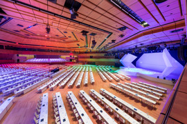Große Ideen brauchen passende Räume - so werden Veranstaltungen zum Erfolg. Das Austria Center Vienna bietet auf 5 Ebenen 21 Säle, 134 Meetingräume und mehr als 26.000 m² Ausstellungs- und Networkingfläche mit einer Kapazität für bis zu 22.800 Personen. Diese Raumvielfalt ist europaweit einzigartig und ideal für traditionelle und neue Meetingformate. Österreichs größtes Kongress- und Veranstaltungszentrum ermöglicht perfekte Wissensvermittlung und reales wie digitales Vernetzen in angenehmer Atmosphäre: 100 Mbit WLAN stehen jedem Veranstalter kostenlos zur Verfügung. Die weltweit einzigartige digitale Infrastruktur ist auch perfekt für hybride Kongresse und Veranstaltungen.