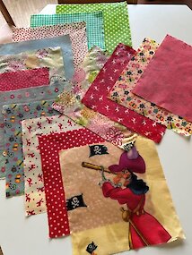 Bienenwachstücher, die mit den Kindern aus alten Baumwollstoffresten gemacht wurden, werden am 5. Juni 2026 mitgegeben. Nachhaltige Verpackung im Kindergarten!