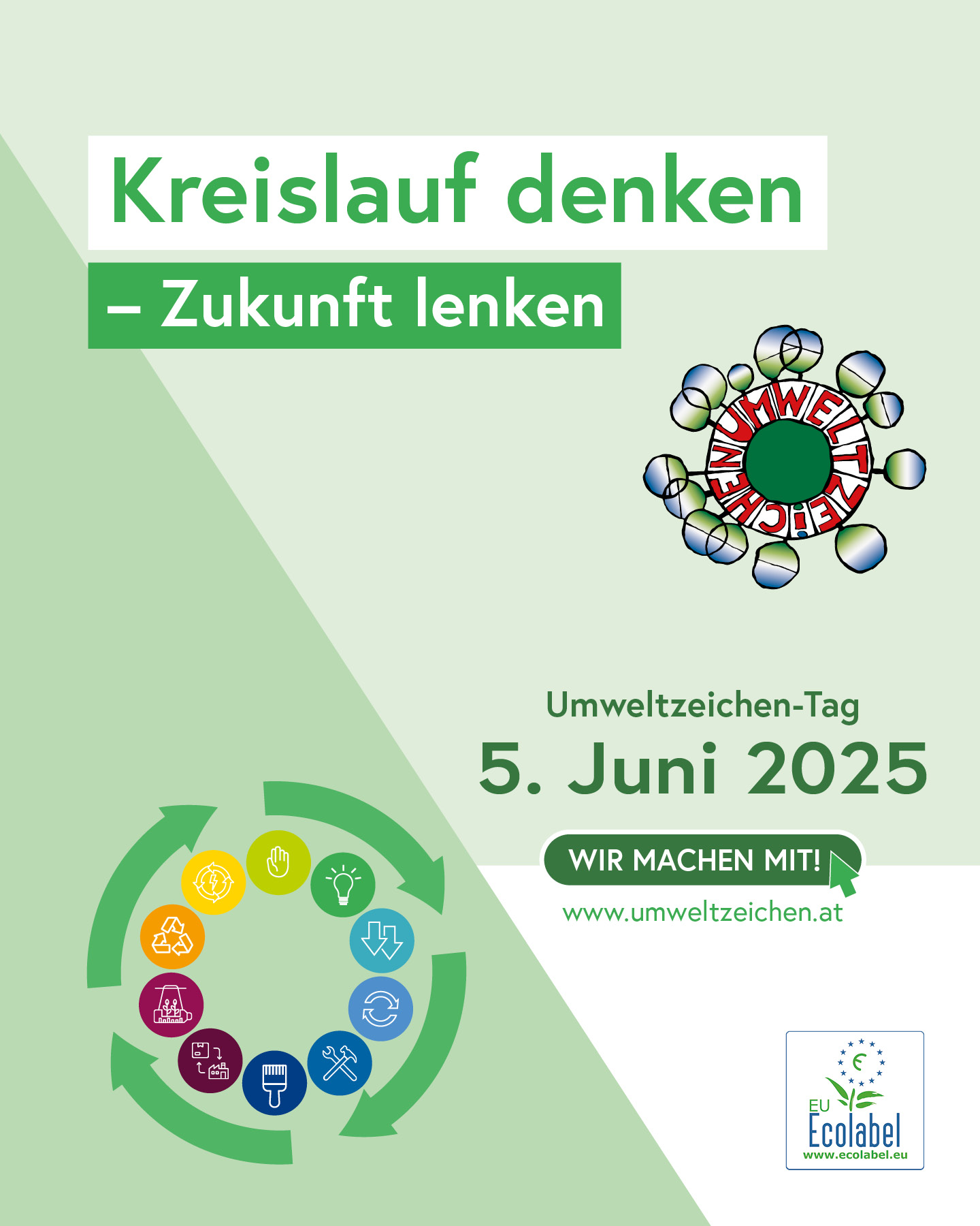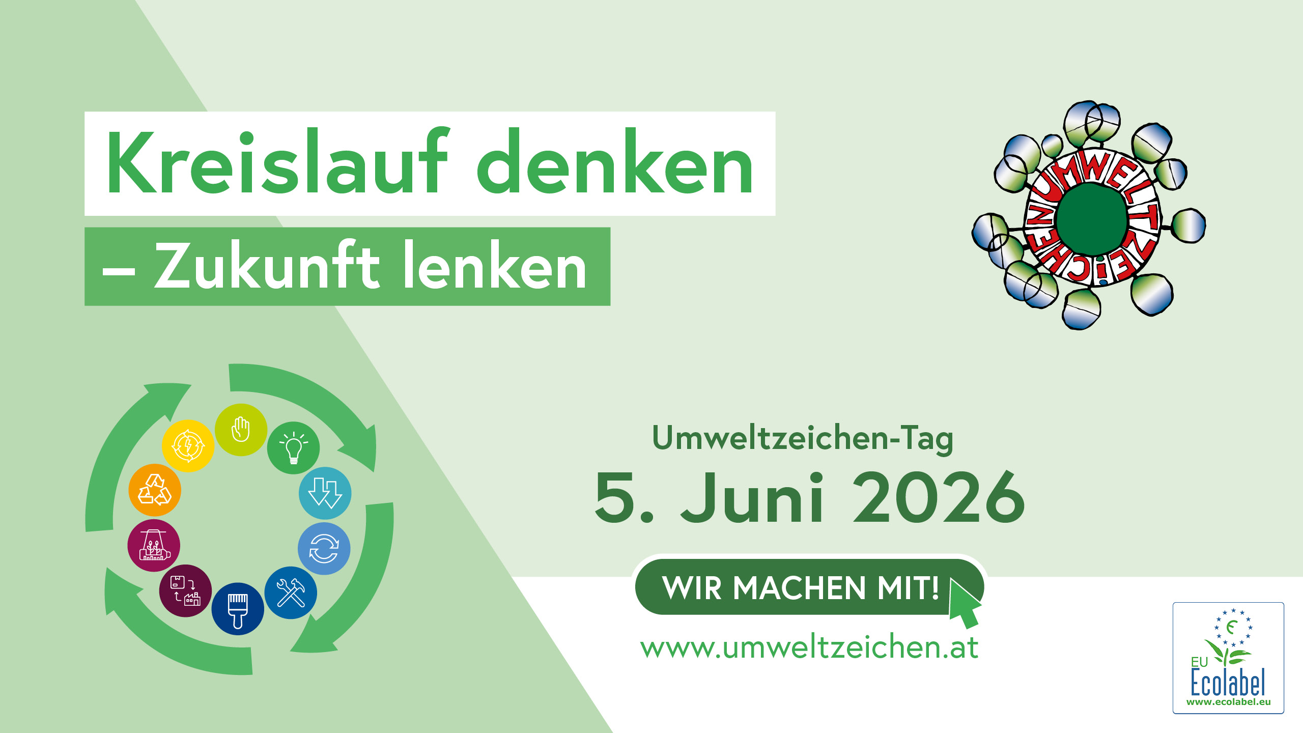 Der Umweltzeichen-Tag bietet allen Lizenznehmern die Gelegenheit, ihr nachhaltiges Engagement sowie ihre umweltfreundlichen Produkte und Dienstleistungen besonders sichtbar zu machen. In diesem Jahr steht der Tag ganz im Zeichen der Kreislaufwirtschaft. Nutzen Sie die Gelegenheit und machen Sie mit passenden Aktionen auf dieses wichtige Thema aufmerksam zu machen. Gerne können Sie die Sujets für den Umweltzeichen-Tag 2026 verwenden.