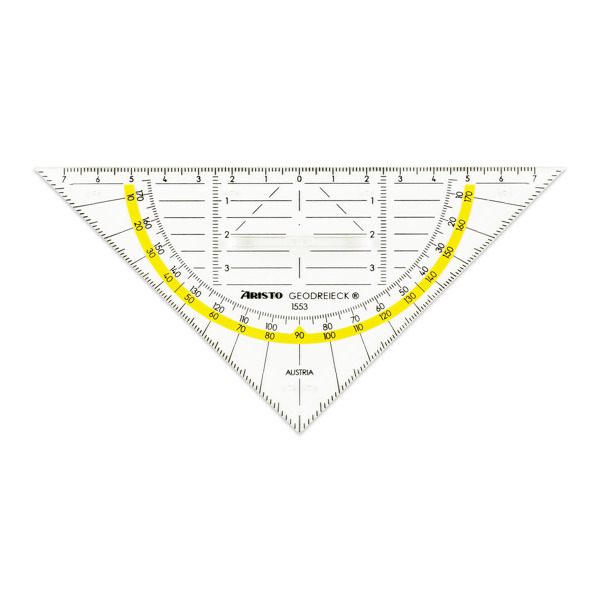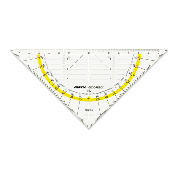 ARISTO AR1552 Geodreieck®, das Original, Plexiglas ohne Griff, mit Facetten und Tuschenoppen, Hyp. 16 cm
