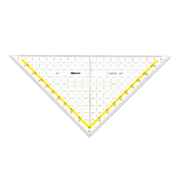ARISTO AR1651/2 TZ-Dreieck 400 Gon, Plexiglas mit Griff, mit Facetten und Tuschenoppen, Hyp. 22,5 cm